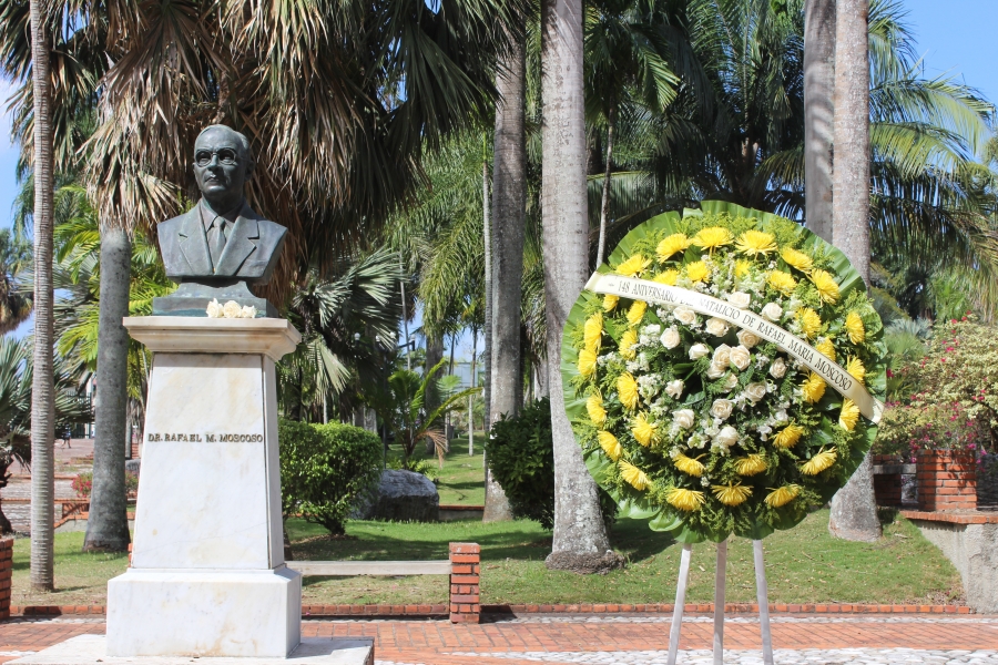 El 12 de octubre de 1976, mediante ley 456, fue designado con el nombre Dr. Rafael Ma. Moscoso, el Jardín Botánico Nacional de Santo Domingo; así mismo, la revista científica Moscosoa que edita el Departamento de Botánica de esta institución, fue nombrada en su honor, en la Plaza Central del JBN se erigió un busto, esculpido en bronce adornado en ambos lados por hermosos ejemplares de la Palma Catey (Bactris plumeriana), una especie muy apreciada por el Dr. Moscoso.
