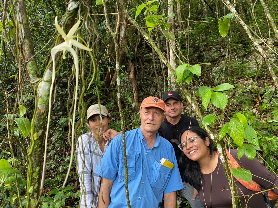 Tras cuatro días de trabajo intenso, la Sierra de Bahoruco fue el escenario ideal para que el equipo compuesto por el Dr. James Ackerman, las biólogas Normandie González, Betsaida Cabrera y el fotógrafo de conservación y miembro de nuestro Voluntariado @eladiofoto fueran tras el paso de la orquídea “sapito” o “fantasma” que es una traducción del inglés “ghost orchid”, (flor blanca, grande y que le cuelgan dos bucles).