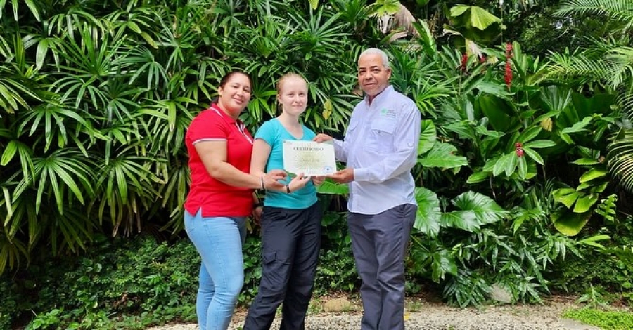 Como parte de su despedida, le fue entregado un certificado de participación de las manos de Pedro Suárez, director general del JBN y Martha López, encargada del Departamento de Planificación y Desarrollo, en compañía de su equipo, como muestra de su buen desempeño.