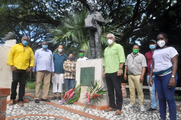 El Jardín Botánico Nacional de Santo Domingo Dr. Rafael M. Moscoso realizó en el día de hoy, 5 de mayo del 2021, una actividad simbólica, sencilla, pero significativa, para celebrar el Día Nacional del Árbol. Fueron sembradas seis plántulas de Guatapaná, Caesalpinia coriaria, una especie que además de sus funciones biológicas y ecológicas, tiene múltiple utilidad directa para los humanos: medicinal, desinfectante, antibiótico, curtiente, dendro-energía, tinte, astringente, etcétera.